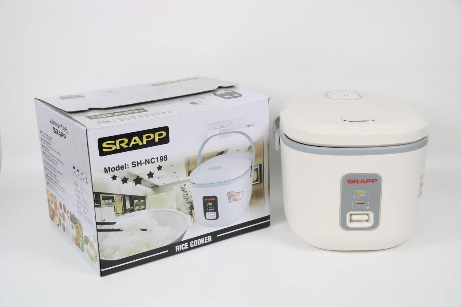Nồi cơm điện Srapp SH-NC198 có công suất 900W với công nghệ nấu 3D, được trang bị 3 mâm nhiệt ở đáy, thân và nắp nồi giúp nấu cơm nhanh chín đều