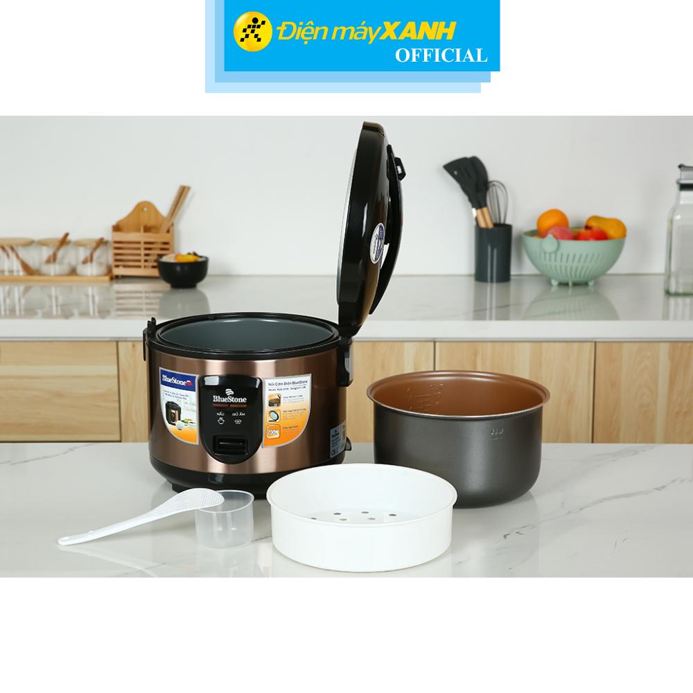 - Mẫu nồi cơm điện BlueStone này được thiết kế màu vàng đồng - đen hiện đại, làm tăng vẻ đẹp thẩm mỹ cho không gian bếp.
