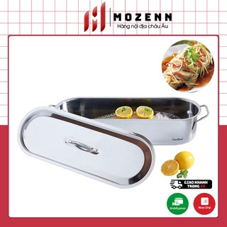 - Nắp đậy được làm bằng thép Cromagran không gỉ cao cấp, siêu bóng sáng đẹp. - Có thể dùng hấp cá, mực, ngao sò, rau củ... rất tiện ạ. Có thể bày biện luôn thực phẩm ngay trên bàn ăn (sau khi hấp xong) mà không cần phải đặt cá lên đĩa. - Vỉ hấp chống gỉ cao cấp đục lỗ thoát nước giúp nước cá chảy xuống đáy nồi và bốc ngược lại hơi nước của cá thẩm thấu vào bên trong thịt cá, giúp hương vị thịt cá thơm ngọt hơn bao giờ hết. Vỉ hấp tháo rời, dễ cọ rửa. - Tay cầm chắc chắn, rộng giúp chúng ta cầm nắm trong lúc sử dụng, bưng bê di chuyển 1 cách thuận tiện, dễ dàng. - An toàn trong máy rửa bát. - Dùng được trên tất cả các loại bếp kể cả bếp từ.