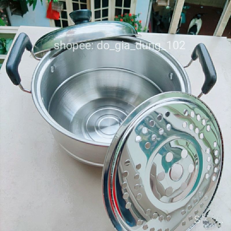 Xoong / Nồi hấp inox 21cm , Nồi dùng được bếp từ, bếp ga ( quai chống nóng)
