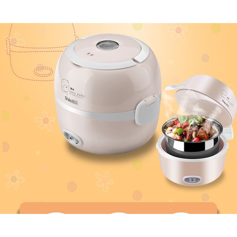 Nồi Hộp cơm cắm điện 2 tầng inox 1.2 lít 220V đa năng nấu cơm, nấu mì, hâm nóng đồ ăn tiện dụng B2 DL TECH