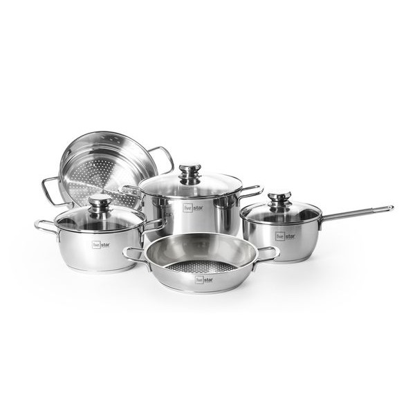 Nhà Cửa & Đời Sống > Đồ dùng nhà bếp & Phòng ăn > Bộ nồi và chảo || Bộ Nồi Inox 3 Đáy Từ Fivestar Standard FSB50002 5 chiếc nắp kính ( tặng 2 vá canh )