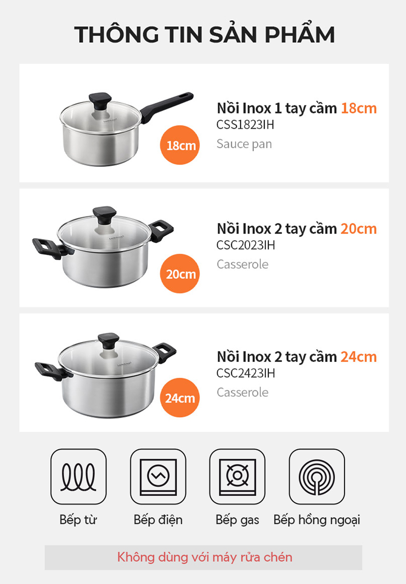 | Sử dụng cho bếp | Bếp từ, bếp điện, bếp gas, bếp hồng ngoại |