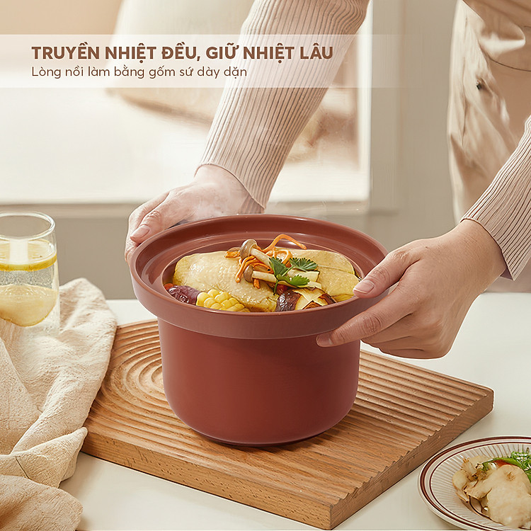 Với công nghệ nấu chậm thông minh, lòng gốm sứ bền bỉ và thiết kế tinh gọn, sản phẩm là trợ thủ đắc lực giúp bạn chăm sóc sức khỏe gia đình bằng những bữa ăn ngon – lành – bổ dưỡng mỗi ngày.