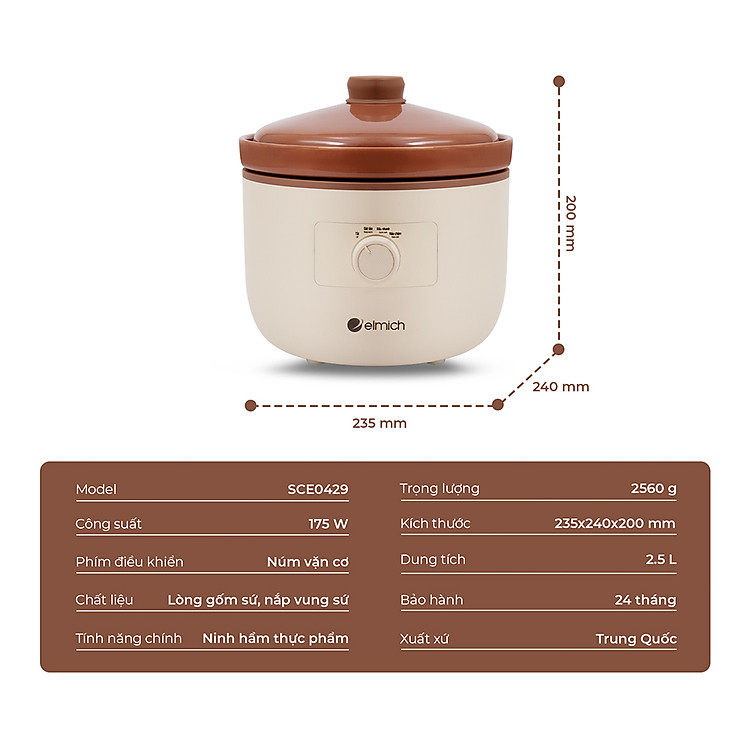 Nồi nấu chậm Elmich SCE0429 – Chiết xuất trọn vẹn dinh dưỡng, giữ nguyên vị tự nhiên