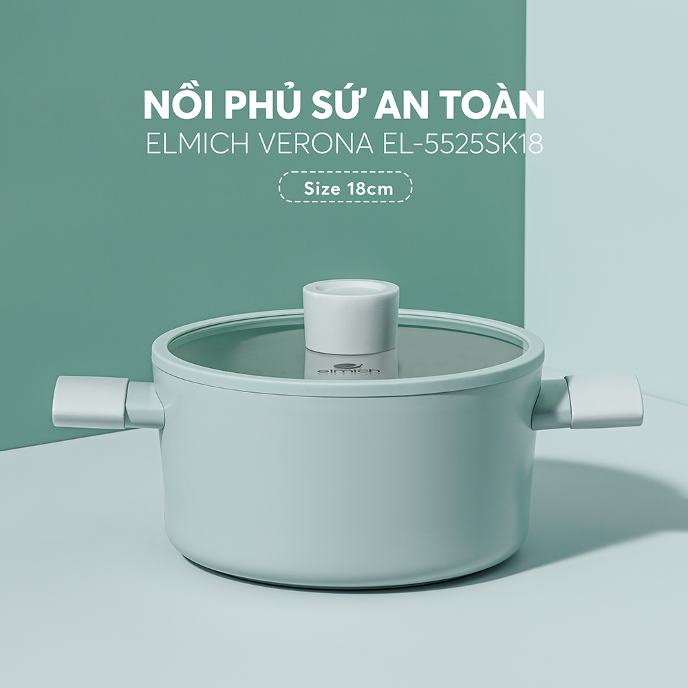 Nồi quánh phủ sứ an toàn Elmich Verona EL-5525SK, Hàng chính hãng, dùng được bếp từ- JoyMall