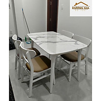 Bàn ăn mặt đá Ceramic bóng cao cấp chân inox mạ vàng kết hợp ghế Louis