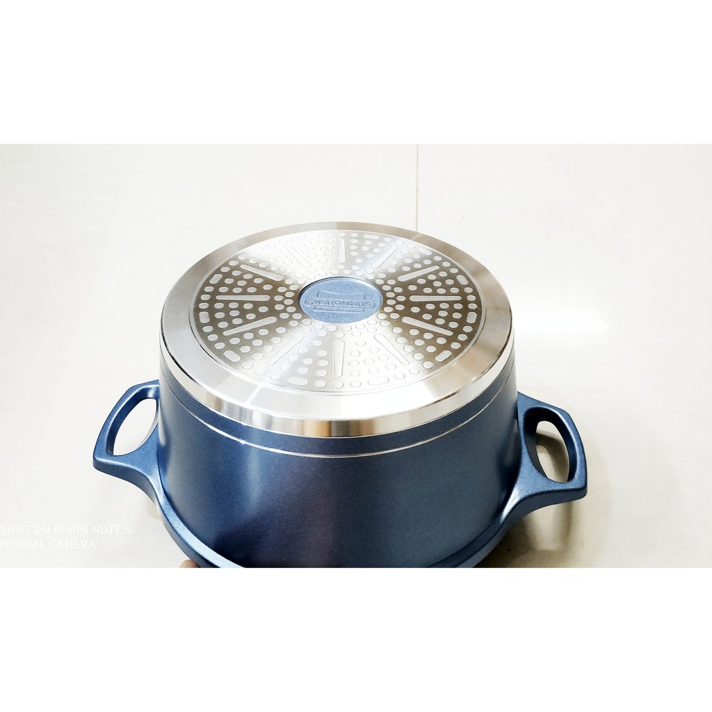 Chống dính đá hoa cương siêu bền: Toàn bộ lòng nồi được phủ lớp chống dính đá hoa cương sáng màu vừa sang trọng vừa chống dính cực tốt. Lớp chống dính này hoàn toàn không chứa PFOA, không phản ứng với thức ăn và an toàn tuyệt đối cho sức khỏe. Kết cấu bền chắc: Nồi có thiết kế tinh tế, với phần miệng dày hơn thành chảo, giúp tăng độ bền, hạn chế móp méo nếu gặp va chạm. Vung kính viền inox: Vung nồi bằng kính cường lực trong suốt dày dặn, chịu nhiệt tốt với phần núm bằng nhựa bakelit bọc silicon cách nhiệt. Viền inox chắc chắn giúp hạn chế nguy cơ nứt vỡ nếu chẳng may bị rơi. Công năng tuyệt vời, giúp việc nấu ăn trở nên đơn giản, nhanh gọn hơn Độ bền cao: Sản phẩm được làm từ hợp nhôm đúc nguyên khối cao cấp, sử dụng công nghệ đúc Hàn Quốc đạt tới sự bền chắc tuyệt đối. Lớp chống dính đá hoa cương phủ trong lòng nồi giúp bạn chế trường hợp trầy xước, bám bẩn, đổi màu… cho sản phẩm luôn trông như mới.