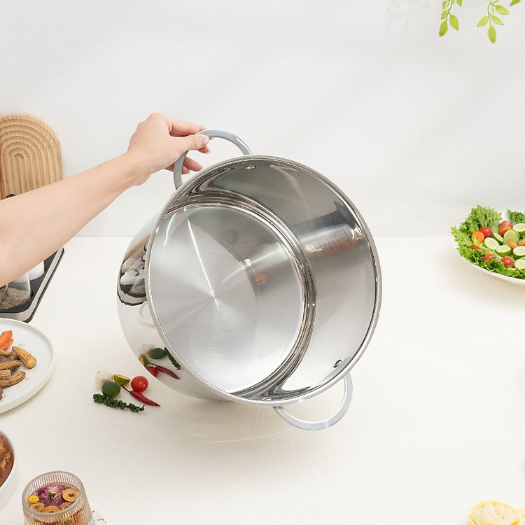 - Tay cầm inox dày, tán đinh chắc chắn – đầm tay, không nóng, an toàn khi sử dụng.
