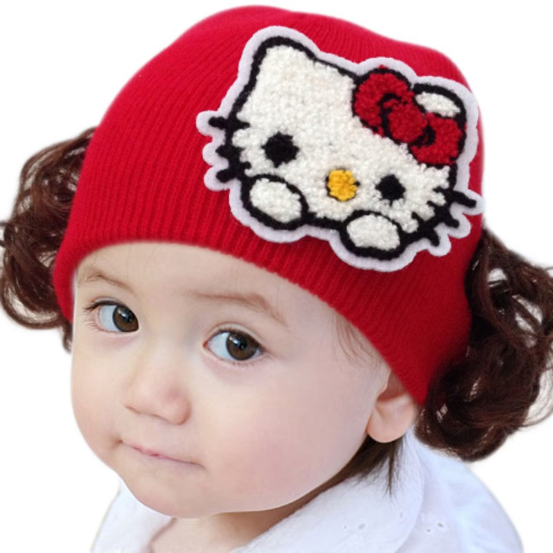 Giới thiệu Nón dệt kim họa tiết Hello Kitty đáng yêu cho bé gái