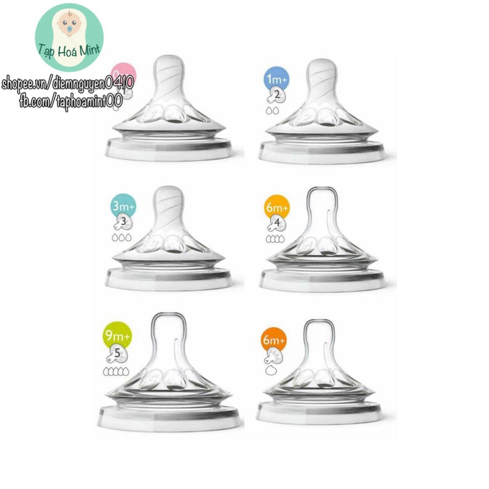 Giới thiệu Núm ti Avent Natural số 0, 1,2,3 (xoắn) & ty 4 (trơn)