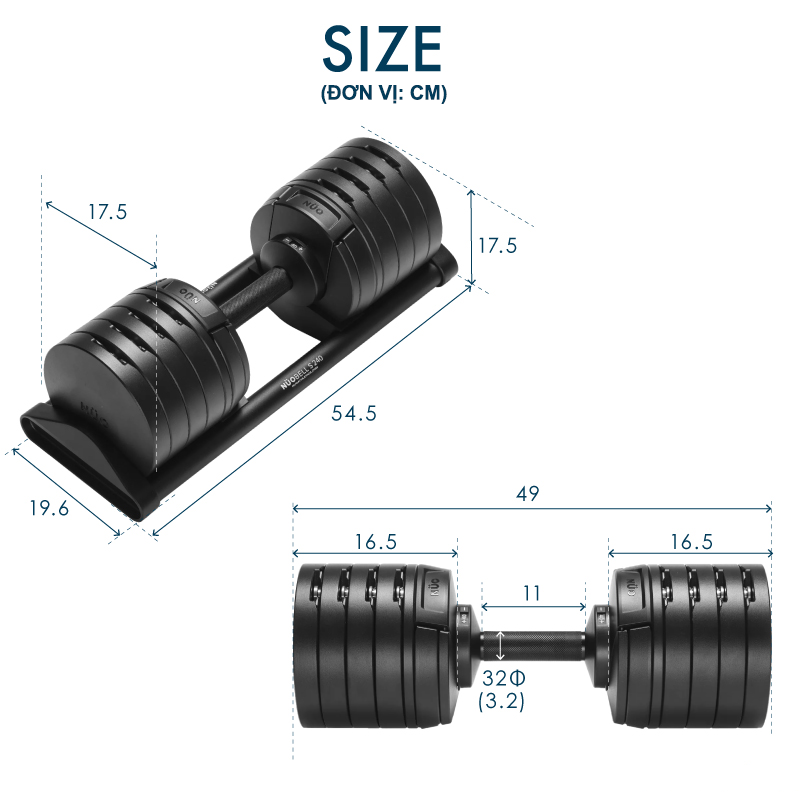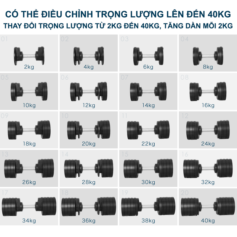 Giới thiệu Nuobell - Tạ dumbbells 40Kg Điều Chỉnh 20 Mức – Tay Cầm Khắc Vân, Phù Hợp Gym, Tập Luyện Tại Nhà