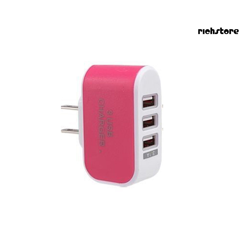 Type: USB Charger Plug Type: EU/US Plug(Optional) Material: Plastic, Metal Output: [US Plug] 5V 3.1A, [EU Plug] 5V 2A Input: [US Plug] 100V-240V, [EU Plug] 100V-220V Compatible with: All Phones, Tablets, Other Mobile Devices That Charged by USB Cable Features: Portable, 3 USB Power Ports, Indicator Function Size: 6.8cm x 5cm x 2.8cm/2.68" x 1.97" x 1.10" (Approx. )