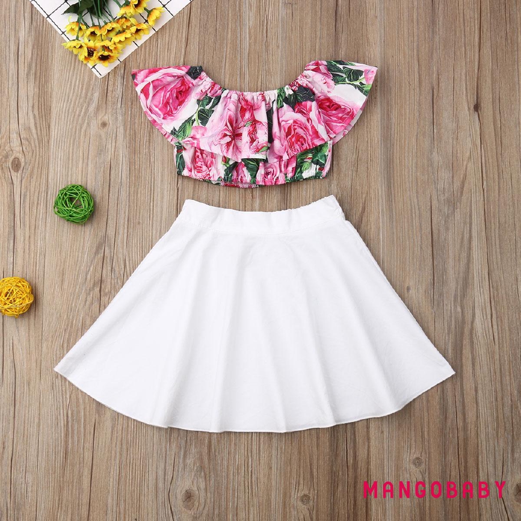 Giới thiệu Bộ Áo Croptop Trễ Vai + Chân Váy Hoa Đáng Yêu Cho Bé Gái
