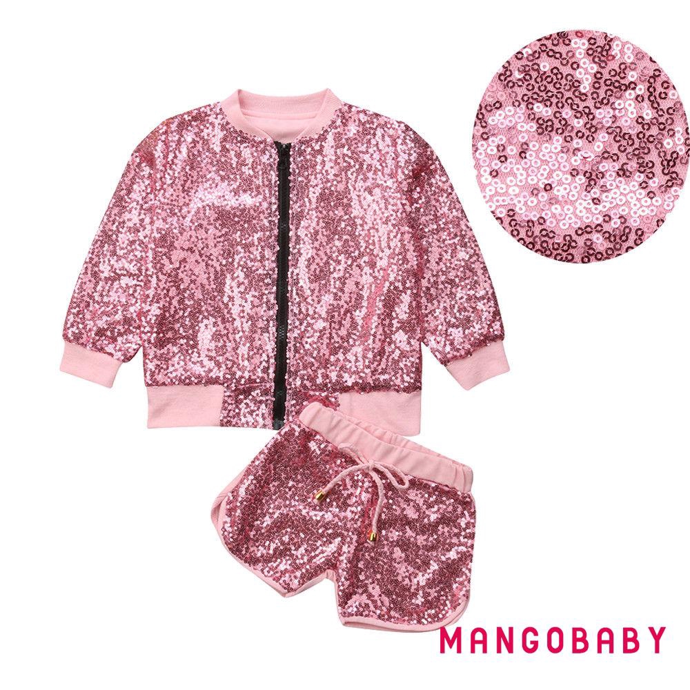 Thời Trang Trẻ Em > Bé gái | 3 tháng-4 tuổi > Set trang phục || Bộ Áo Khoác Có Khoá Kéo Lấp Lánh + Quần Ngắn Mùa Thu Cho Bé Gái 0-24 Tháng Tuổi