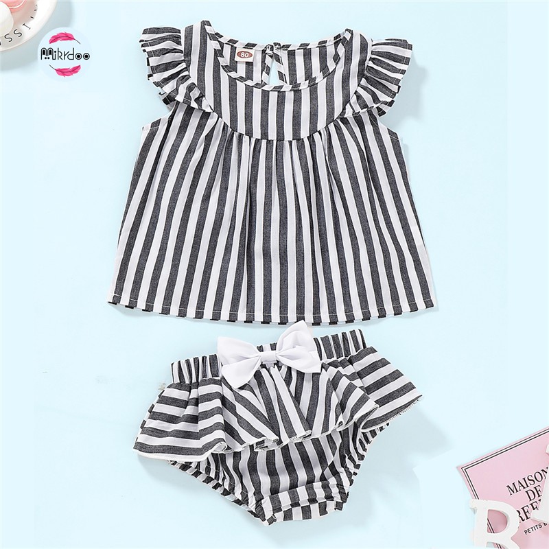 Giới thiệu Bộ Đồ Áo Phối Quần Short Mikrdoo Họa Tiết Kẻ Sọc Thời Trang Cho Bé Gái