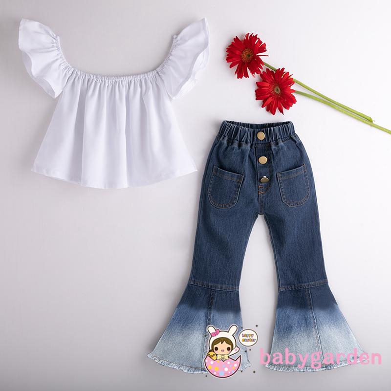 Description Toddler Girls Summer Tops+Flared Jeans Set !!