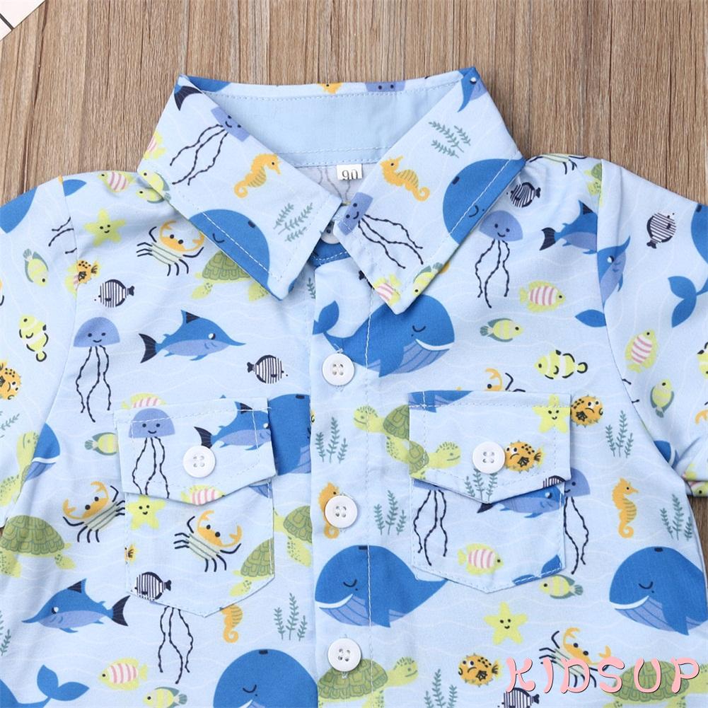 Giới thiệu Set áo thun 2 dây in hình cá voi + quần short kẻ sọc cho bé trai
