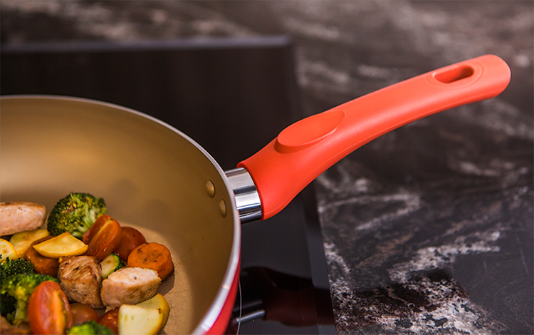 Tay cầm chống nóng, chịu nhiệt tốt: Tay cầm của chảo được phủ một lớp silicon, cách nhiệt tốt, bắt vít chắc chắn với thân chảo giúp người dùng dễ dàng thao tác sử dụng và đảm bảo an toàn. Phía cuối tay cầm còn được thiết kế lỗ treo móc giúp treo lên gọn gàng khi không sử dụng, tạo sự thẩm mỹ cho không gian.