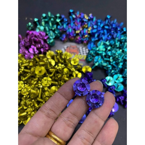 ốc titan đầu sao 2 tầng 6li10 GR5 dù sao bắt nón bảo hiểm , carte  bắt dàn áo thông dụng nhiều loại xe