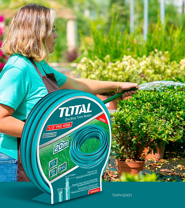 Ống nhựa PVC 3 lớp dài 20m, rộng 1/2 inch TOTAL THPH2001 là sản phẩm ống dẫn nước chất lượng cao làm từ chất liệu PVC và có 3 lớp