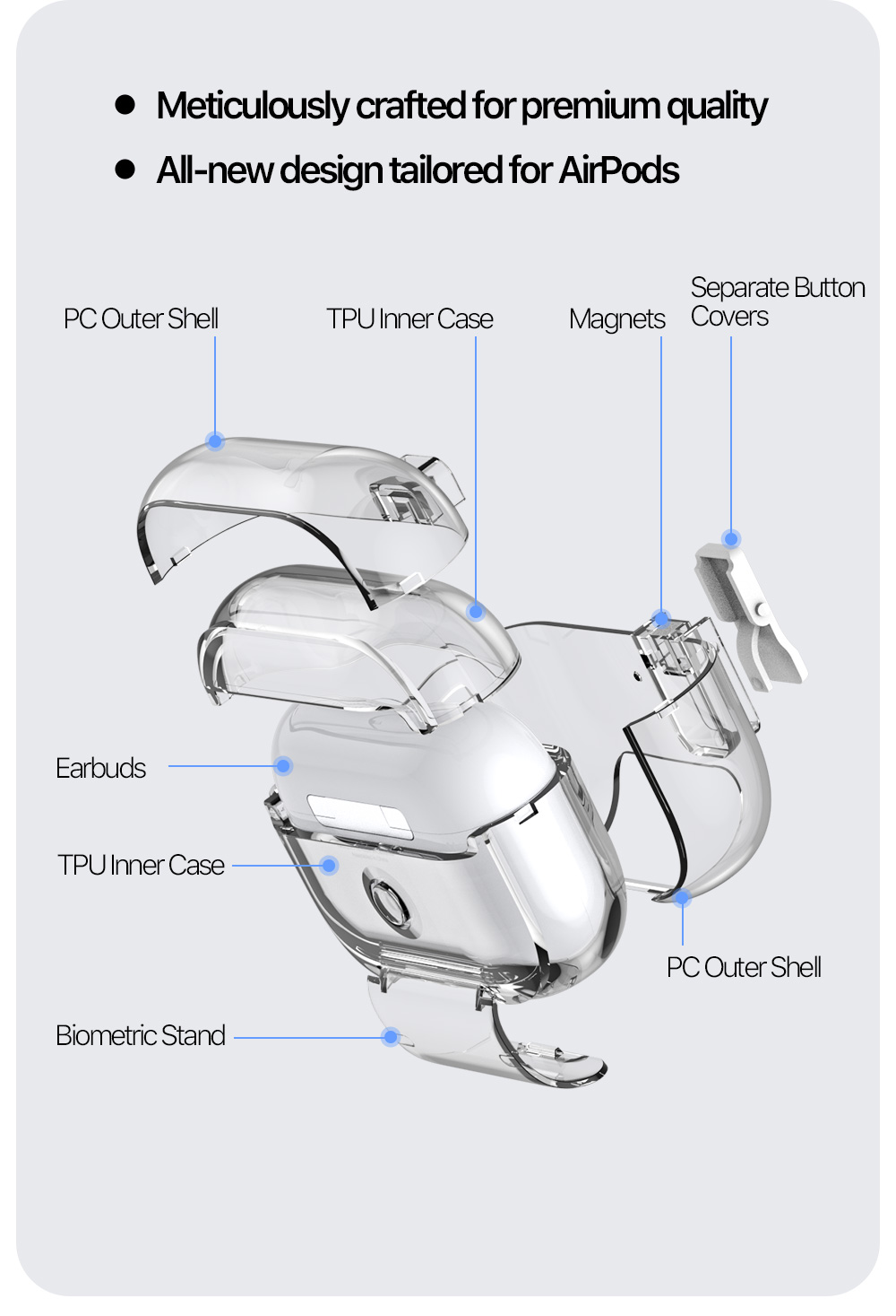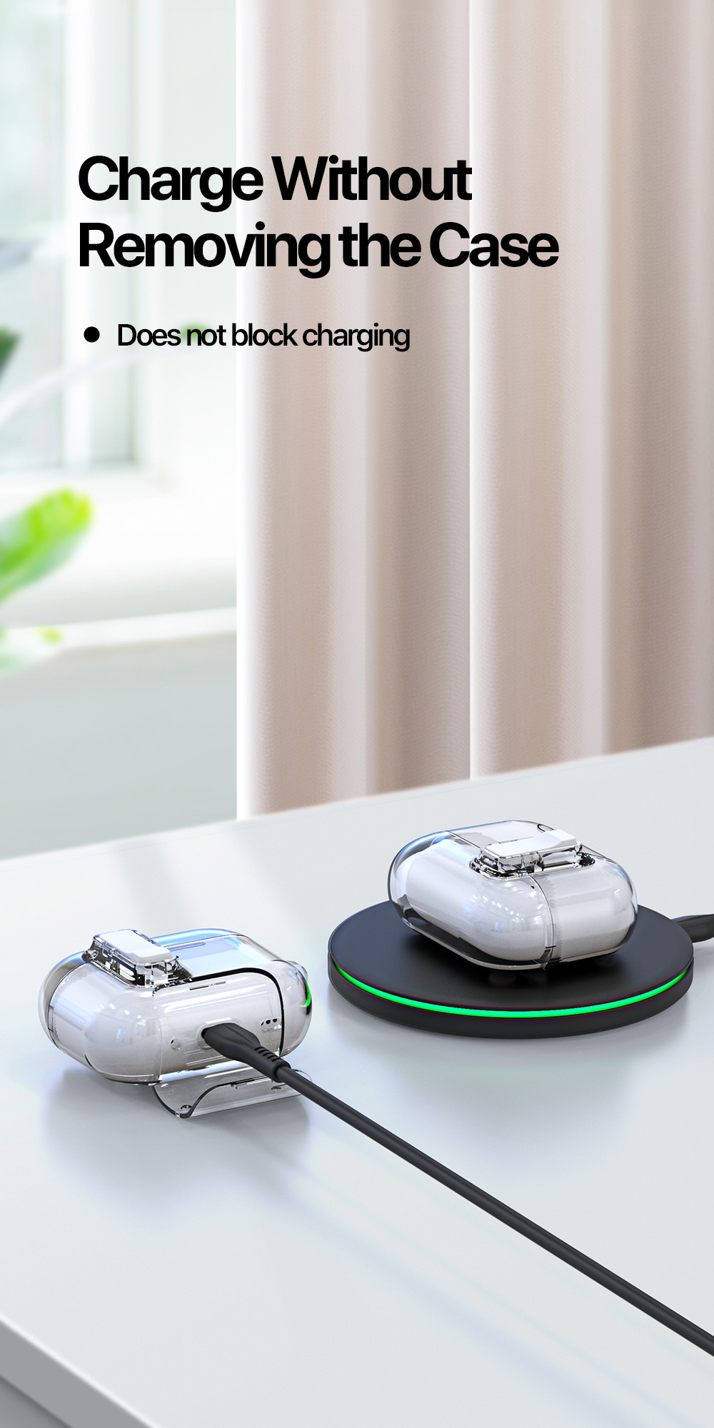 Tương thích sạc không dây mà không cần tháo rời, vừa khít hoàn hảo với AirPods
