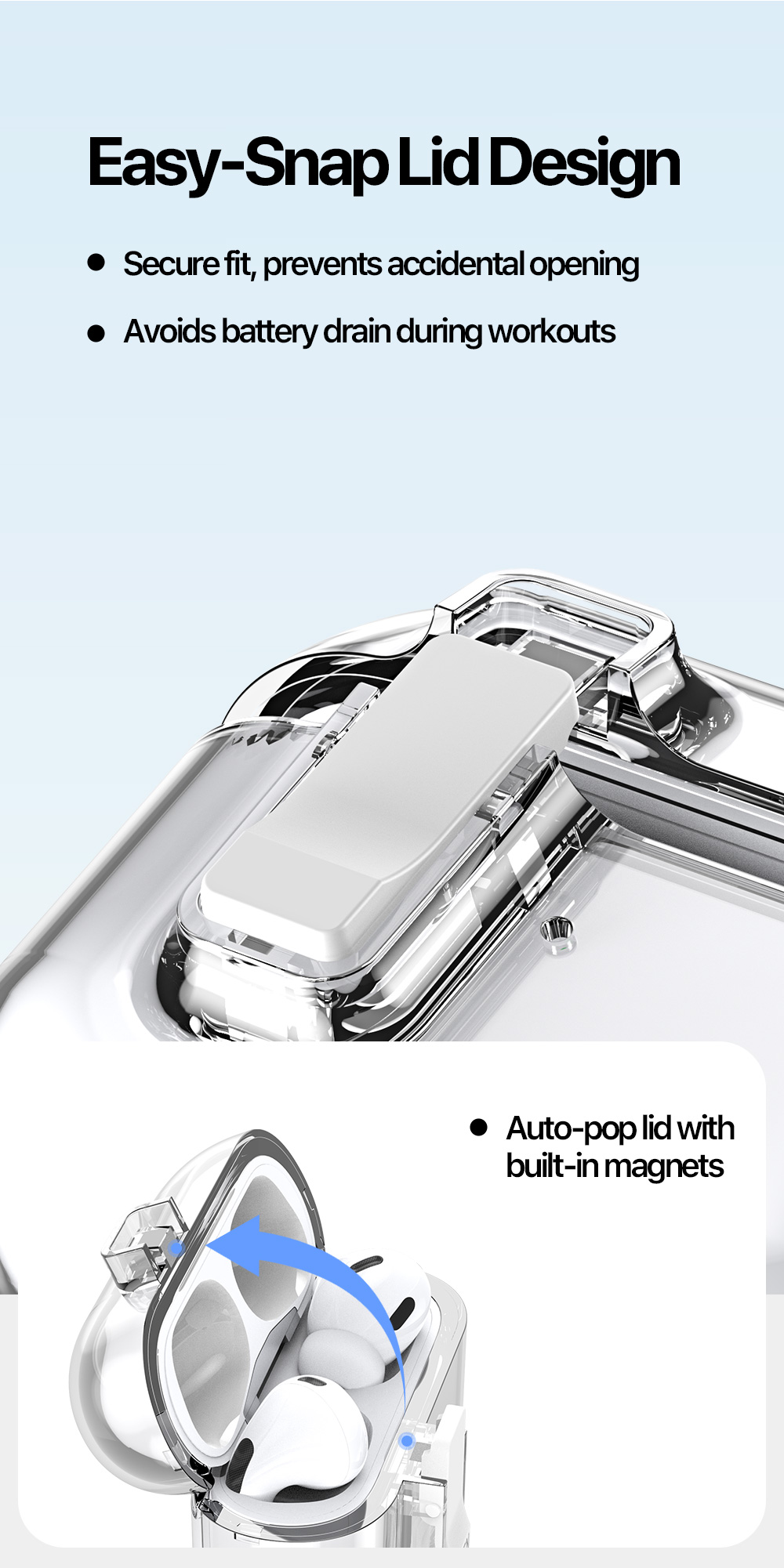 Nắp khóa từ tự động giúp ngăn ngừa việc vô tình mở nắp và hao pin.