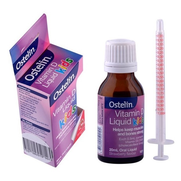 Vitamin D Ostelin dạng nước (20ml) (0-12 tuổi) của Úc là loại thực phẩm chức năng bổ sung Vitamin D cho trẻ sơ sinh và trẻ nhỏ vô cùng hiệu quả. Vitamin dạng nước và thơm hương dâu tây nên rất dễ uống, dễ hấp thu. Sản phẩm có kèm ống đo lường bên trong giúp mẹ cho bé uống vitamin thật dễ dàng và chính xác. Đây là sản phẩm của Úc. Loại Vitamin này được đặc chế dành riêng cho bé từ 0-12 tuổi nên rất có hiệu quả, quá trình sử dụng cũng rất tiện lợi. Với những bé sơ sinh vẫn còn đang bú mẹ thì vitamin D Ostelin cũng vẫn cần thiết phải bổ sung để đảm bảo đủ lượng vitamin D cần thiết cho bé. Vitamin D Ostelin dạng nước rất dễ hấp thu Sản phẩm này thực sự đang quá HOT tại Úc cũng như thị trường nhiều nước phát triển khác, đặc biệt là ở Châu Âu và Châu Úc. Mời mẹ tham khảo thêm thông tin về sản phẩm này nhé!