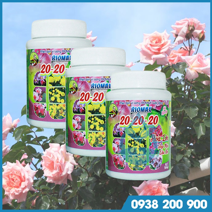 Giới thiệu Phân bón vi lượng NPK 20-20-20 - chai 100 gram BIOMAX - Giúp hoa lớn, đẹp màu, lâu tàn