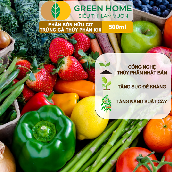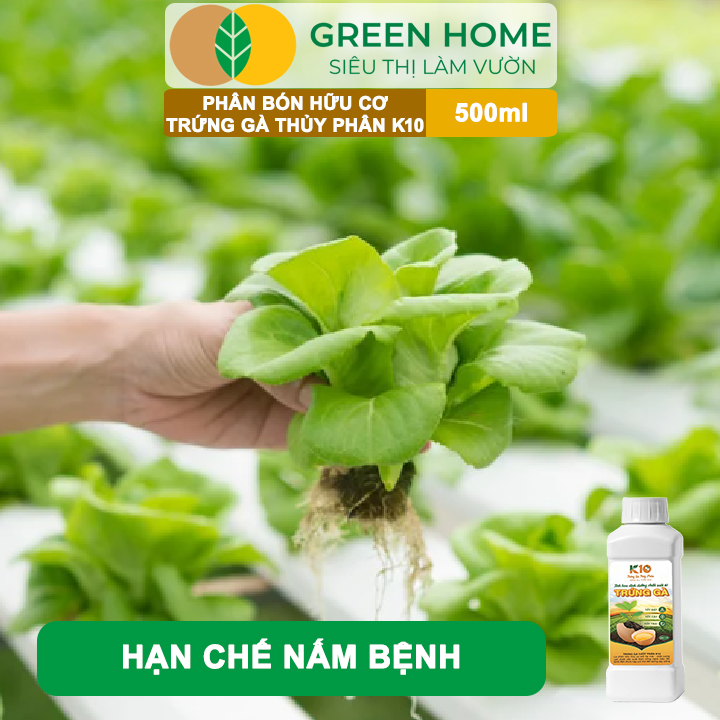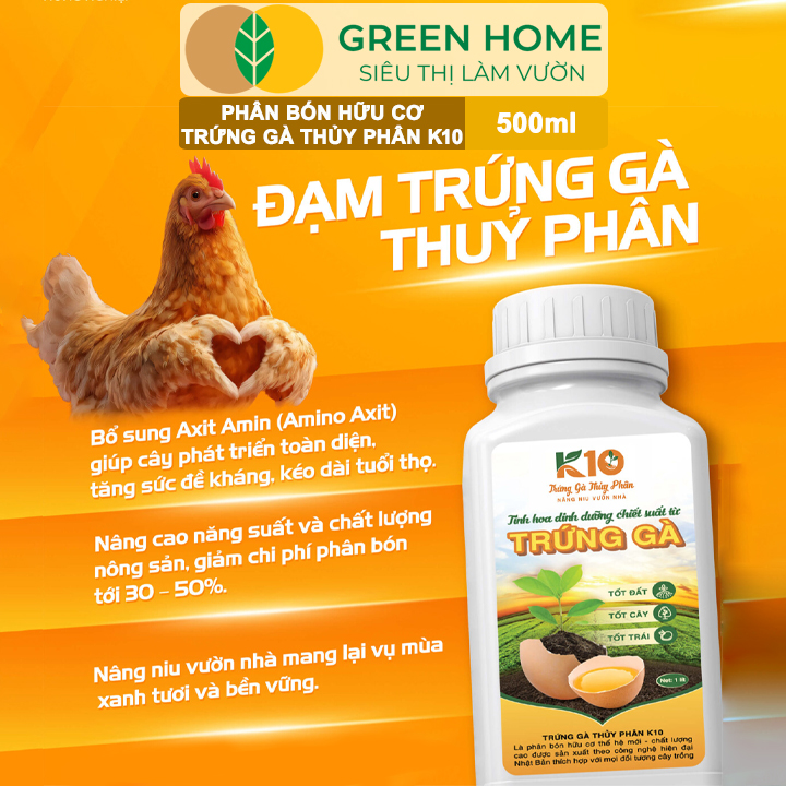 Phân Đạm Trứng Gà Thủy Phân K10 GreenHome, Chai 500ml, Axit Amin Tự Nhiên Từ Trứng Gà, Cải Tạo Đất