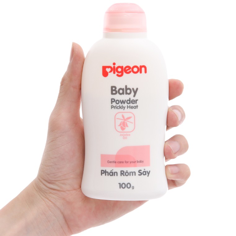 Phấn rôm sảy Pigeon được điều chế từ công thức đặc biệt chứa tinh dầu Jojoba giúp phòng ngừa và hỗ trợ điều trị các hiện tượng rôm sảy gây khó chịu, mẩn ngứa do tã lót, hăm kẽ thường gặp ở trẻ em hoặc do thời tiết nóng ẩm. Phấn còn có tác dụng thấm hút mồ hôi, giúp da bé luôn mềm mại và khô thoáng.