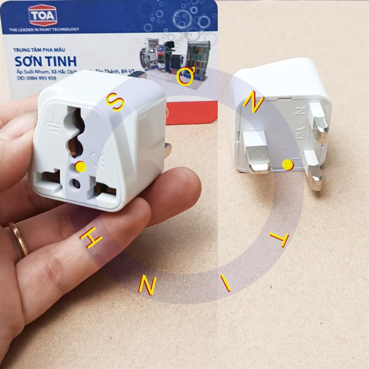 Phích cắm chuyển 3 chấu thành 3 chấu kiểu Anh Ổ CẮM DU LỊCH, 3 CHÂN CẮM KIỂU ANH AD2 MPE GIÁ RẺ