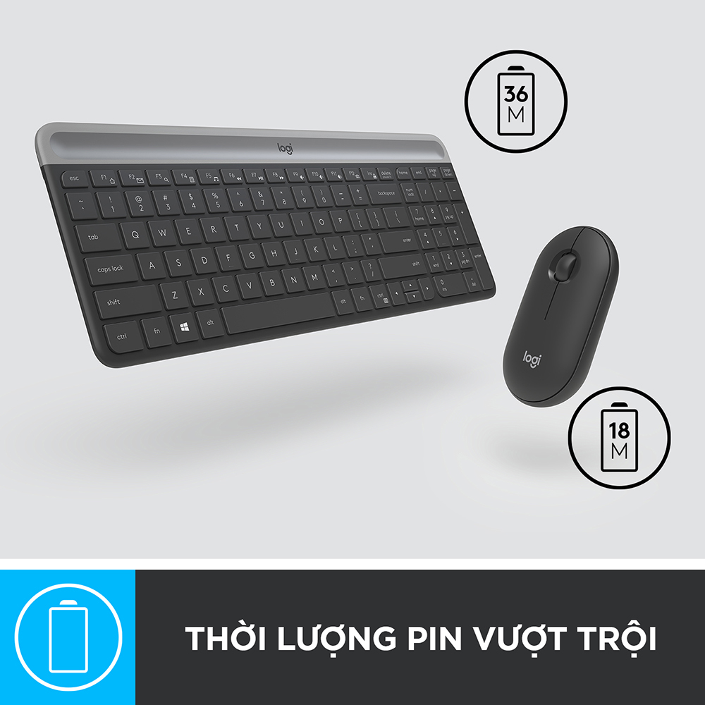 Pin chuột 18 tháng và pin bàn phím 36 tháng. cả chuột và bàn phím đều có chức năng tiết kiệm pin, Tự ngắt khi không sữ dụng. do đó bạn không cần phải lo lắng về việc hao pin