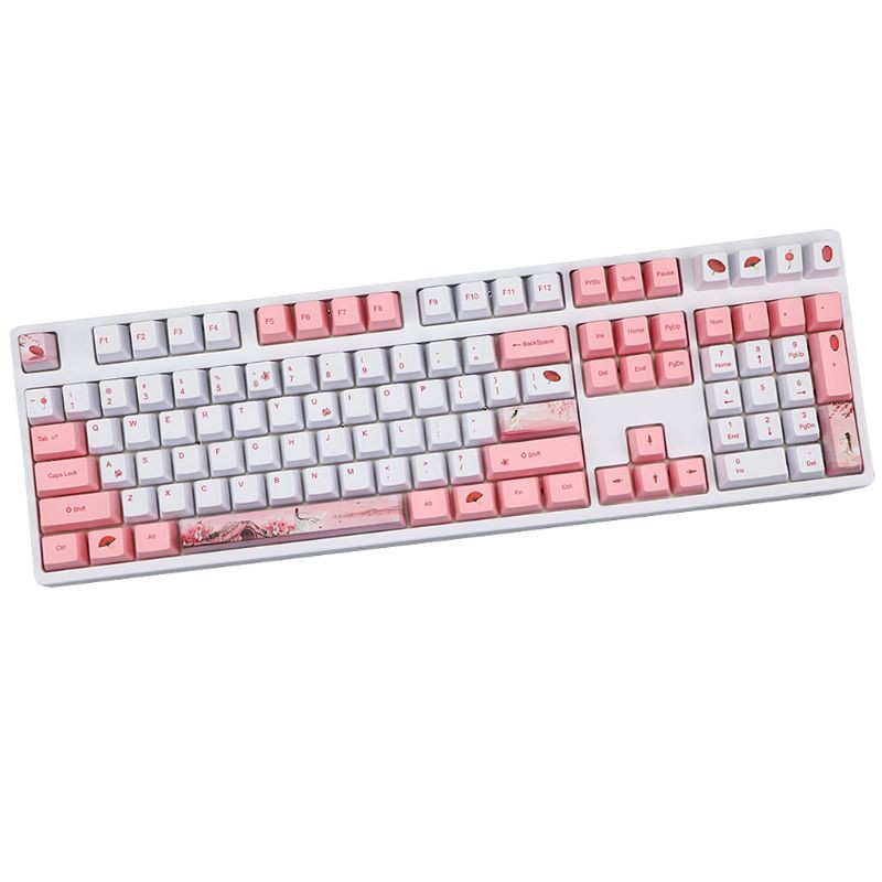 Description: Name: PBT Sublimation Keycaps Key caps: 108+14 keys Cherry Blossom Magpie Bridge Keycaps Material: PBT Ergonomic support: yes Printing Method: thermal sublimation process Themes: Cherry blossom Versatility: you can use this keycap on any mechanical keyboard or mix and match of 14 keys keycaps.