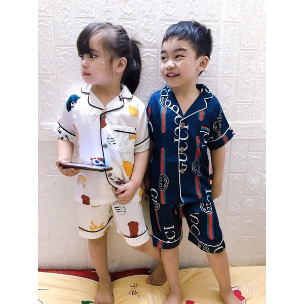 Thời trang trẻ em & trẻ sơ sinh > Quần áo bé trai > Đồ ngủ || bộ pijama lụa cộc tay quần đùi bé trai hàng quảng châu cao cấp sz 10-20kg
