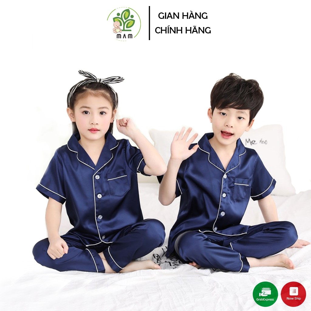 Bộ pijama lụa trẻ em Mầm Store cho bé trai bé gái từ 12 đến 34kg