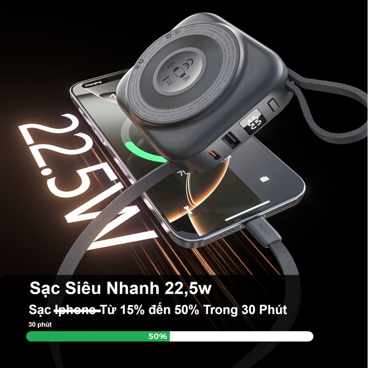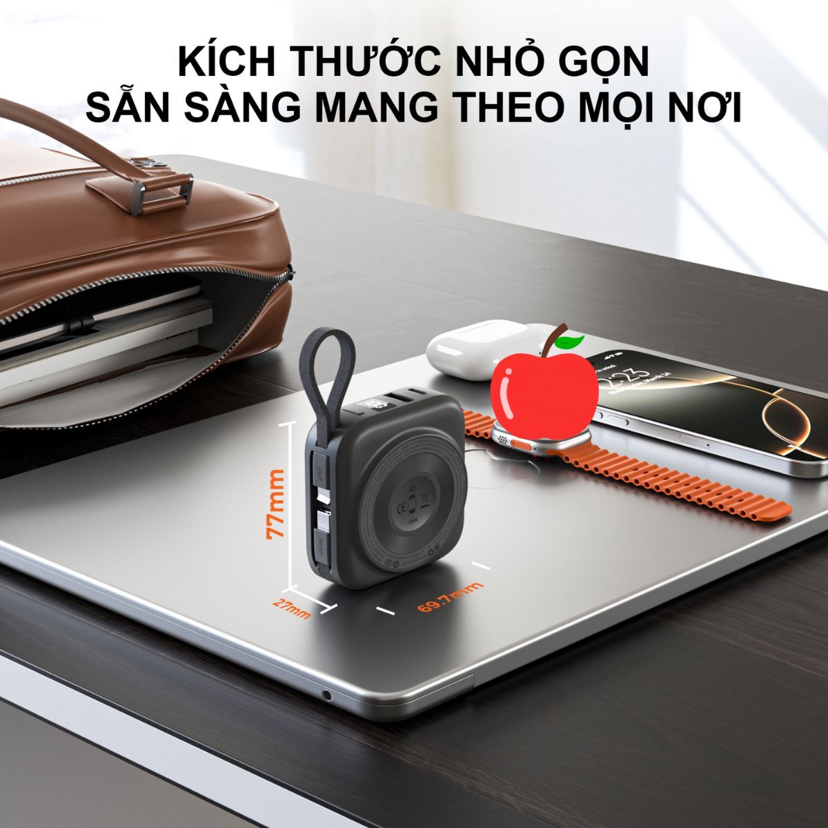 - Pin dự phòng đa năng 2 in 1 Choetech B697 là giải pháp sạc tiện lợi dành cho người dùng hiện đại nhờ khả năng kết hợp hai công nghệ sạc trong cùng một thiết bị nhỏ gọn. Thiết kế thông minh với công suất 22.5W cho phép bạn sạc nhanh an toàn cho điện thoại, đồng thời hỗ trợ sạc đồng hồ thông minh thuộc nhà 'Táo' mọi lúc mọi nơi mà không cần mang theo nhiều phụ kiện.