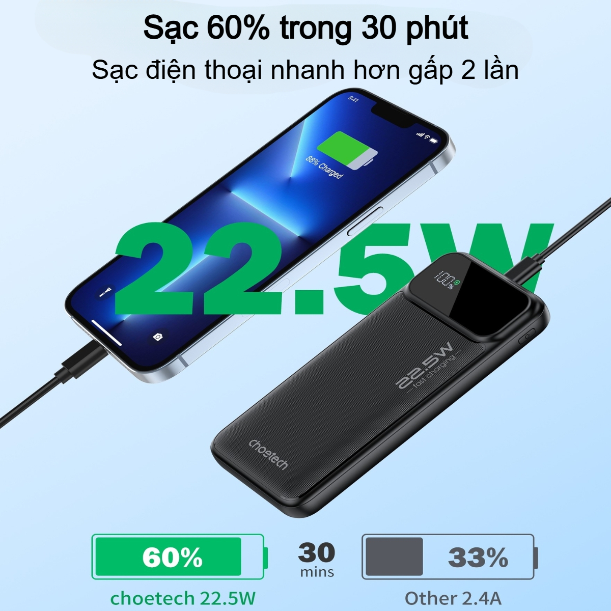 Hình ảnh Pin dự phòng sạc nhanh 22.5w Choetech B728/ Choetech B729/ Choetech B730 dung lượng 10000mAh, 20000mAh, 30000mAh (Hàng chính hãng)