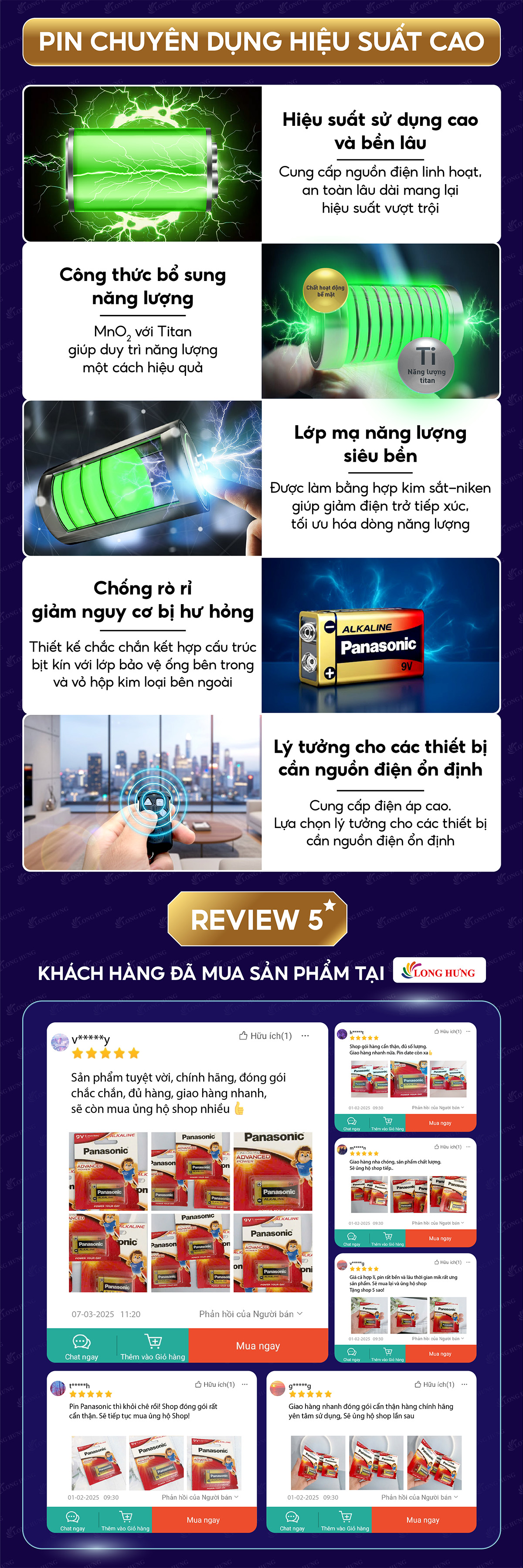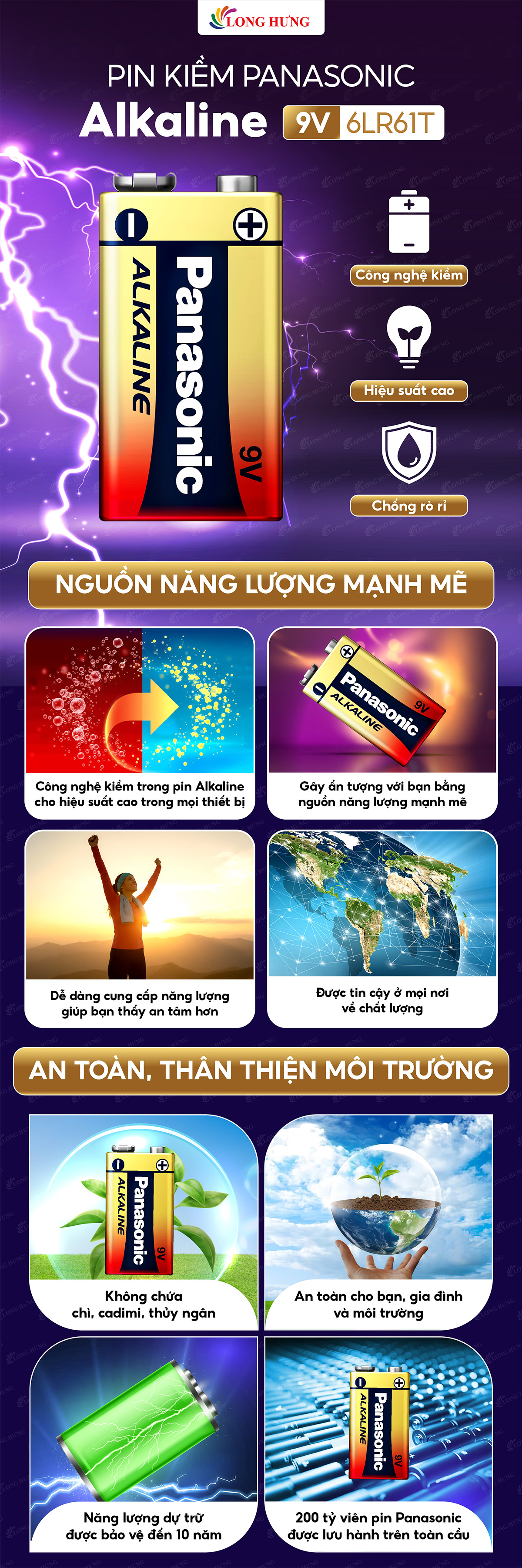 Vỉ Pin kiềm Panasonic Alkaline 9V 6LR61T/1B-V là sản phẩm pin chất lượng cao, chính hãng, lý tưởng cho các thiết bị điện tử.