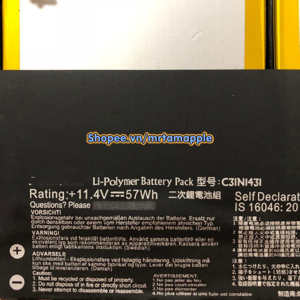 ✔️ Hàng điện tử KHÔNG CHO XEM HÀNG trước khi thanh toán theo QUI ĐỊNH CỦA SHOPEE. Hãy chắc chắn nhận hàng và kiểm tra thông tin chính xác (số phone, địa chỉ…) trước khi bấm mua hàng tránh phát sinh lỗi giao đơn hàng. ✔️ Hàng lỗi được shop BẢO HÀNH ĐỔI MỚI 1 đổi 1 (cùng loại) trong suốt thời gian bảo hành. Giữ lại hộp sản phẩm 7 ngày đầu. Không bảo hành pin bị vô nước, rơi vỡ, va đập. ================================= 🎯🎯Cảm ơn và Chào mừng Quý Khách đã ghé thăm gian hàng của Shop Laptop Mr Tâm. 🎯🎯Link Shop: Shopee.vn/mrtamapple 🎯🎯Nếu Quý Khách Hàng cần thêm thông tin về sản phẩm muốn mua hoặc tìm sản phẩm cần mua trong Shop mà chưa thấy => vui lòng liên hệ trực tiếp (chat) với shop để được Shop hỗ trợ thêm nhé. 💯💯💯Cam kết: ✔️Luôn đặt chất lượng lên hàng đầu. ✔️Không bán hàng chất lượng kém ảnh hưởng đến chất lượng của laptop trong quá trình sử dụng. 🎯🎯Chúc bạn tham quan và mua sắm vui vẻ. ================================= 👉👉👉Thông tin sản phẩm: 🌺Loại Pin: PIN LINH KIỆN (Hàng nhập khẩu) 🌺Hình thức: Mới 100% chưa qua sử dụng. 🌺Thời lượng sử dụng pin liên tục khi sạc đầy cam kết tối thiểu TRONG SUỐT 06 THÁNG ĐẦU TIÊN: + PIN TIÊU CHUẨN: 1h30p -> 3h00p (LÀ PHÂN LOẠI MẶC ĐỊNH, hoặc không được ghi trong tên sản phẩm, Bảo hành 12 tháng) + PIN ZIN: 2h30p -> 4h00p (có ghi tên ZIN trong phân loại hoặc tên sản phẩm, Bảo hành 06 tháng) ================================= 👉👉👉Pin Laptop ASUS E403MC31N1431 (ZIN) - 3 CELL sử dụng thay thế chung (tương thích) cho các dòng: EeeBook E403 E403S E403SA ✔️MÃ PIN TƯƠNG THÍCH / Part numbers: C31N1431 0B200-01600000 ✔️MODEL MÁY TƯƠNG THÍCH / Compatible laptop models: EeeBook Series: E403SA-WX0004T E403SA-WX0002H E403SA E403SA-WX0003H ====== VivoBook Series: E403NA-FA007T L403SA E403SA E403NA-FA003T L403NA L403NA-FA017TS E403NA L403NA-GA021TS R416SA E403NA-FA087T R416NA ====== R416SA-WX0022T R416SA-WX0024T ================================= Một vài lưu ý trước khi đặt hàng : 🚫🚫🚫⚠️⚠️⚠️ 🎯QUÝ KHÁCH NHỚ LƯU Ý XEM KỸ HÌNH ẢNH PIN TRƯỚC KHI ĐẶT MUA như MẶT TRÊN, MẶT DƯỚI, CÁC GÓC PIN, KHỚP GÀI,... và so sánh với PIN laptop Quý Khách đang sử dụng để chọn đặt mua PIN chính xác nhé. 🎯Tất cả sản phẩm đều được kiểm tra đảm bảo hoạt động tốt ổn định và đóng gói CẨN THẬN trước khi chuyển cho Nhà Vận Chuyển giao đến tận tay Quý Khách Hàng. 🎯Shop CAM KẾT giải quyết thỏa đáng mọi trường hợp khách hàng khiếu nại về sản phẩm mua của shop, ĐẢM BẢO HÀI HÒA QUYỀN LỢI CHÍNH ĐÁNG CỦA KHÁCH HÀNG VÀ SHOP. 🎯Vì thế, Quý Khách Hàng hãy yên tâm đặt hàng tại Shop Laptop Mr Tâm nhé. Trân trọng Cảm Ơn! #pinlaptop #pinlaptopgiárẻ #pinlaptopzin #pinlaptoploạitốt #pinmacbookloạitốt #pinmacbookzin #linhkiệnlaptop #linhkiệnpc #shoplaptopmrtam #mrtamapple