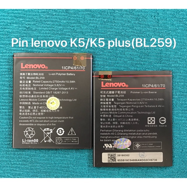 Pin lenovo k5 / k5 plus kí hiệu trên pin BL259 zin theo máy