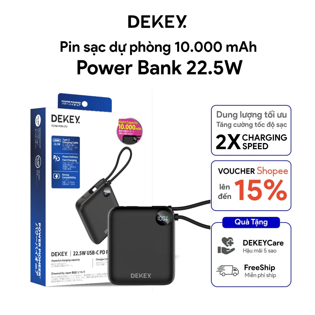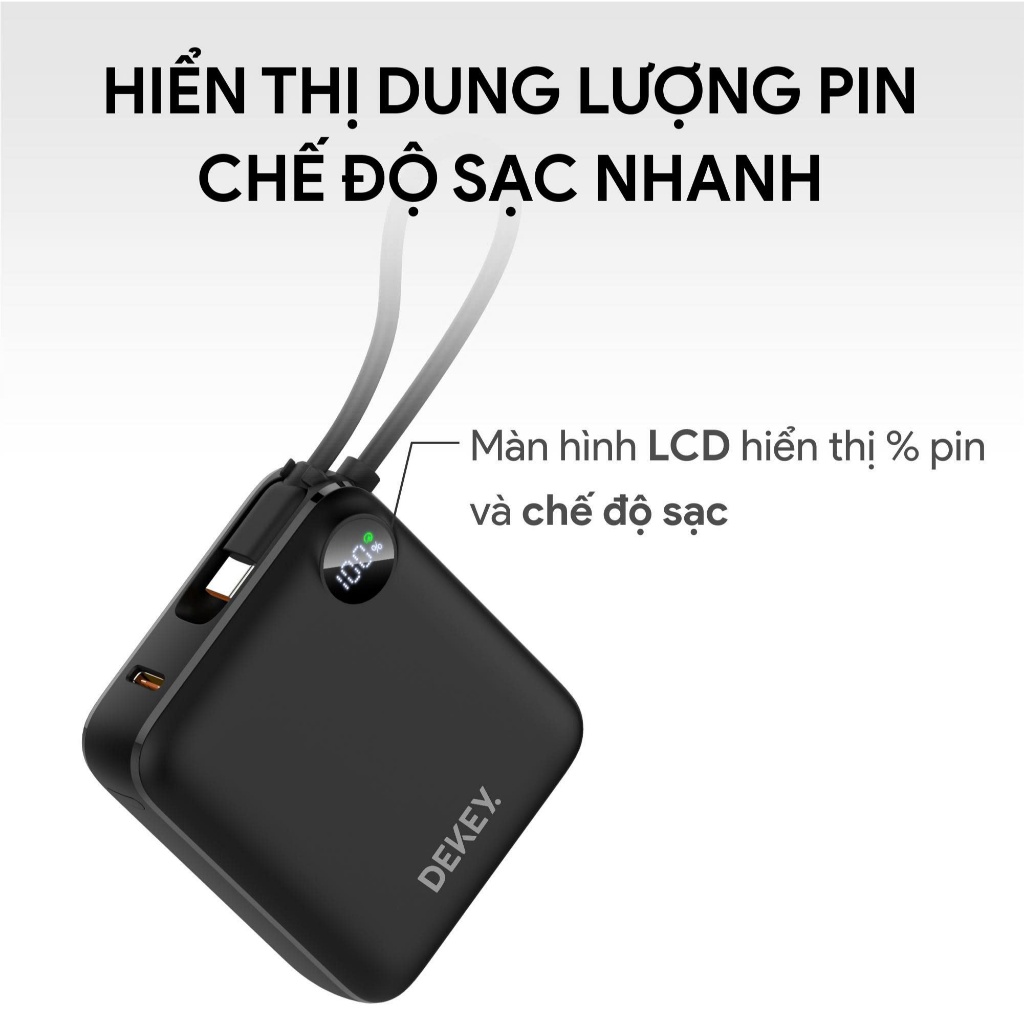 Pin Dự Phòng DEKEY Power Pioneer 10.000mAh 22.5W USB-C PD Power Bank – Tích hợp dây Type-C, thiết kế tối giản, hiệu suất vượt trội
