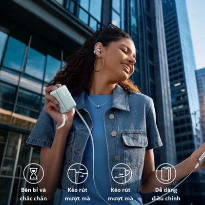 Điểm nổi bật của sản phẩm là cáp dây rút Type-C tích hợp, thiết kế thông minh, giúp bạn không còn lo mang theo dây rời. Ngoài ra, pin còn trang bị cổng USB-C và USB-A, hỗ trợ sạc đồng thời nhiều thiết bị, mang lại sự linh hoạt tối đa trong mọi tình huống.