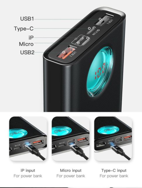 - input : Micro USB / Type C/ lightning ( Mọi cổng sạc hiện tại đều nhận)