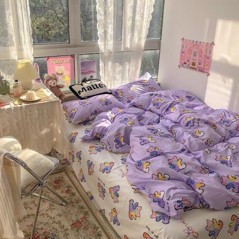 Giới thiệu Poly Gấu Tím Vẽ - bộ chăn ga trải giường có đủ kích thước