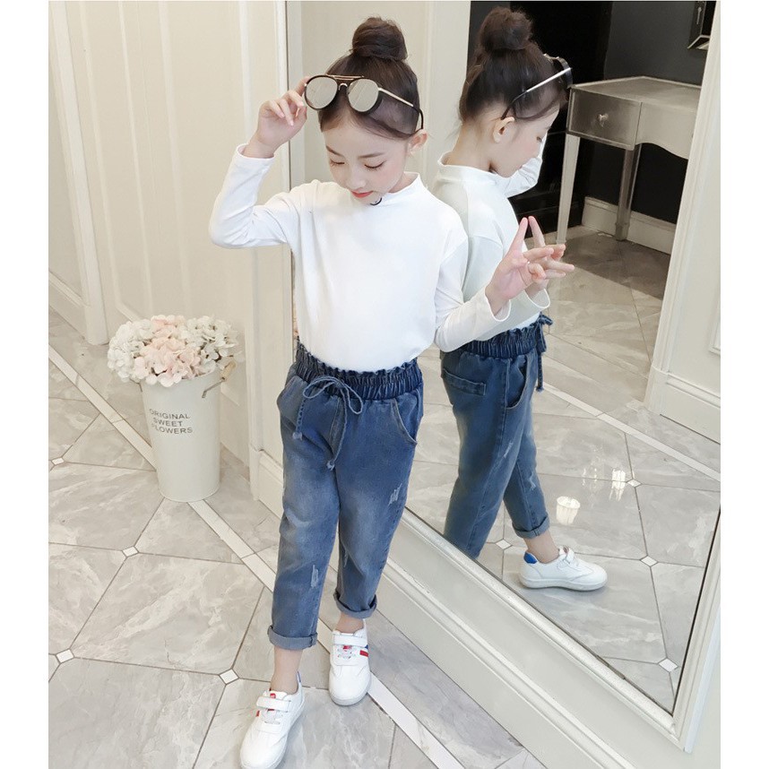 Giới thiệu [QUÀ 1/6 CHO BÉ] Quần jean bé gái cạp cao thắt nơ 20-22kg TE1919