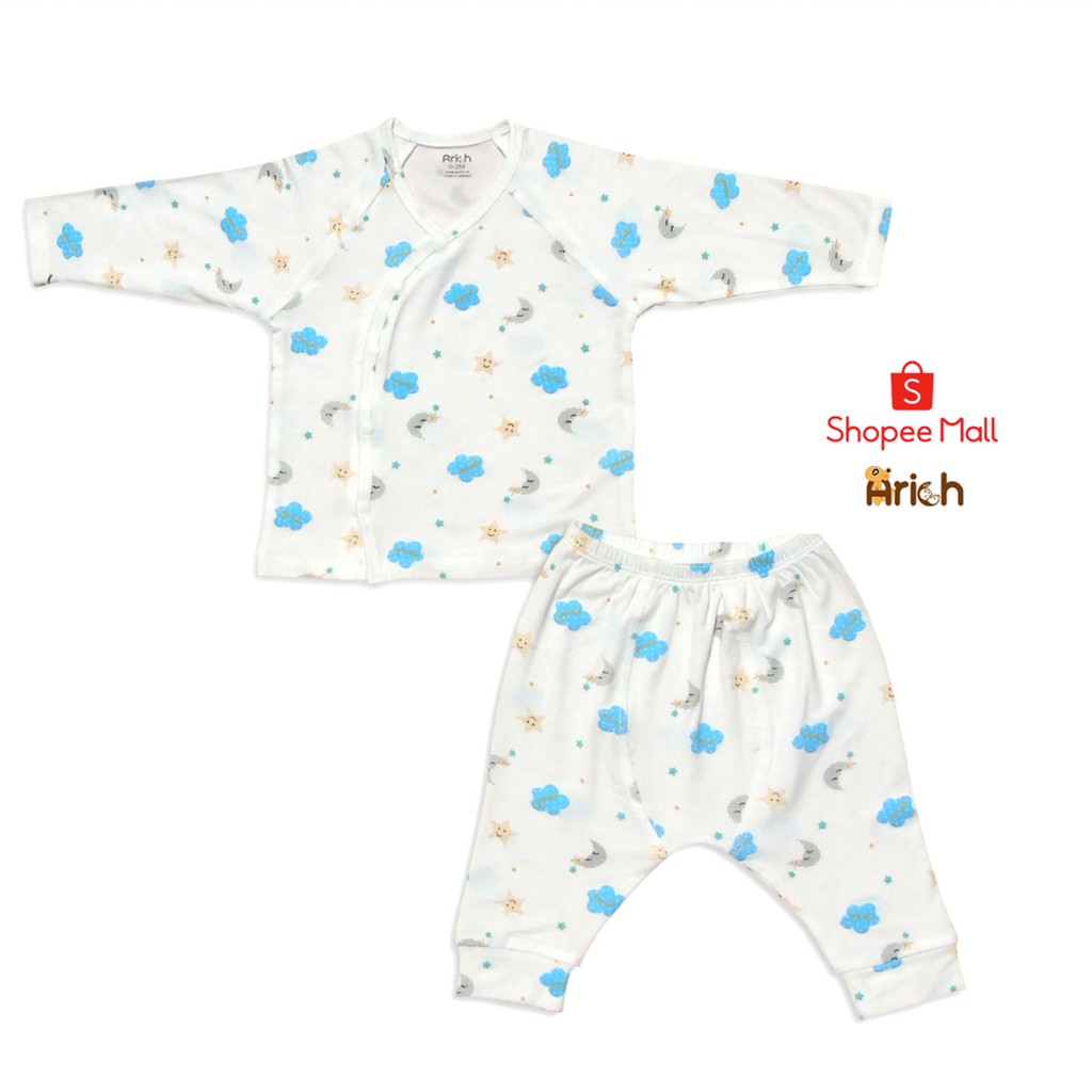 Thời Trang Trẻ Em > Sơ sinh | 0-12 tháng > Set trang phục/body || Bộ quần áo dài cài lệch Arich vải sợi tre họa tiết (size từ 0-3 tháng đến 12-18 tháng)