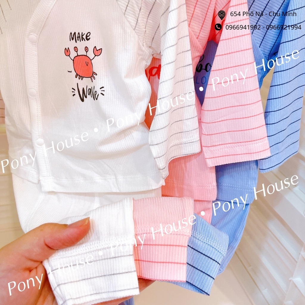 Bộ Quần Áo Sơ Sinh Moon Dài Tay Cài Lệch Chất Len Tăm Giữ Nhiệt, Siêu Mềm Mại Cho Bé Trai Bé Gái Sơ Sinh (0-3M/ 3-6M)