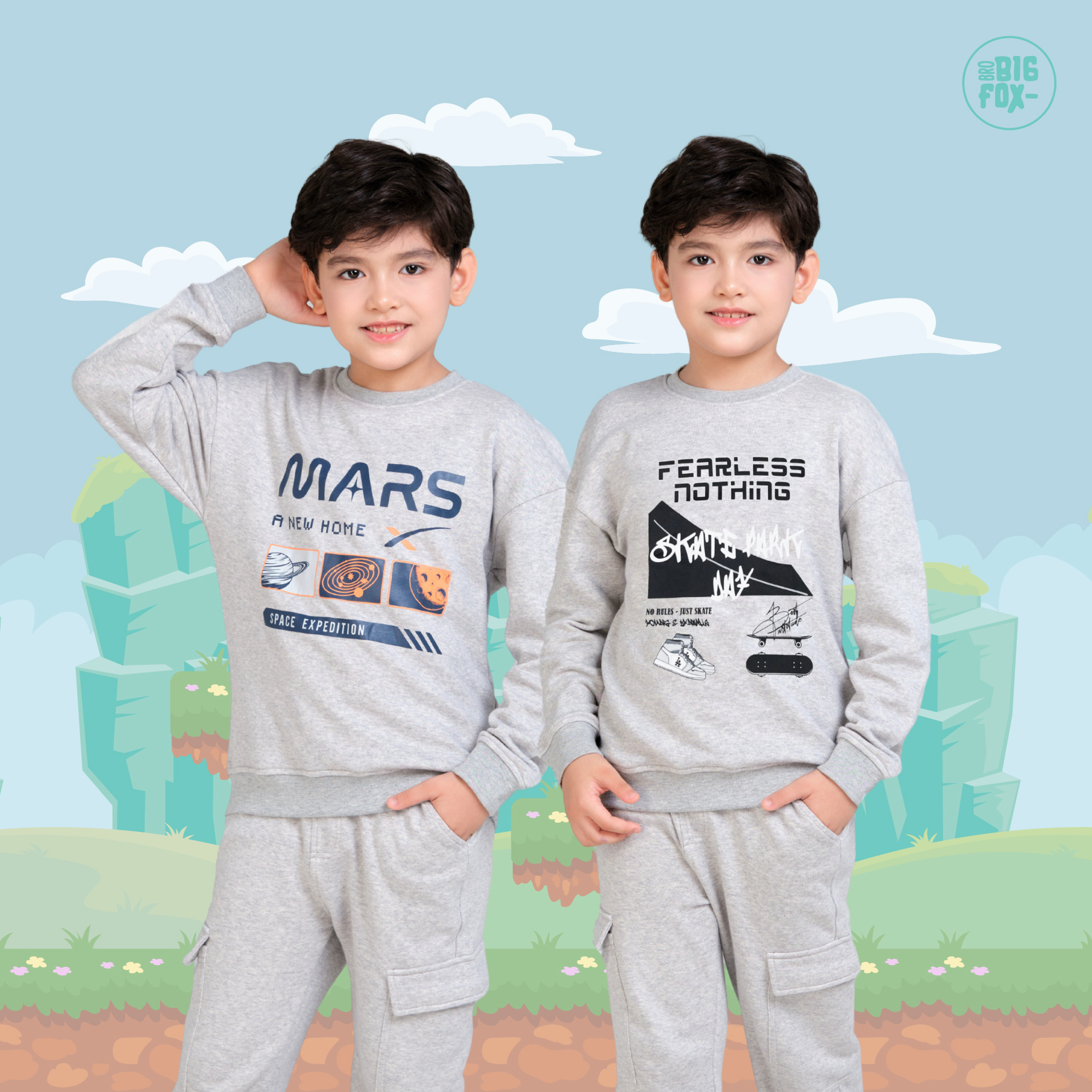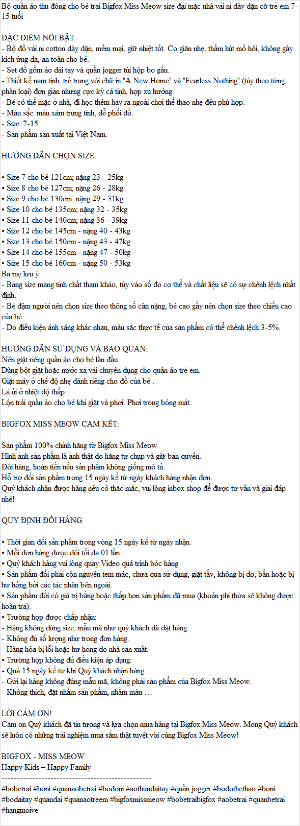 Giới thiệu Bộ quần áo thu đông cho bé trai Bigfox Miss Meow size đại mặc nhà vải nỉ dày dặn cỡ trẻ em 7-15 tuổi