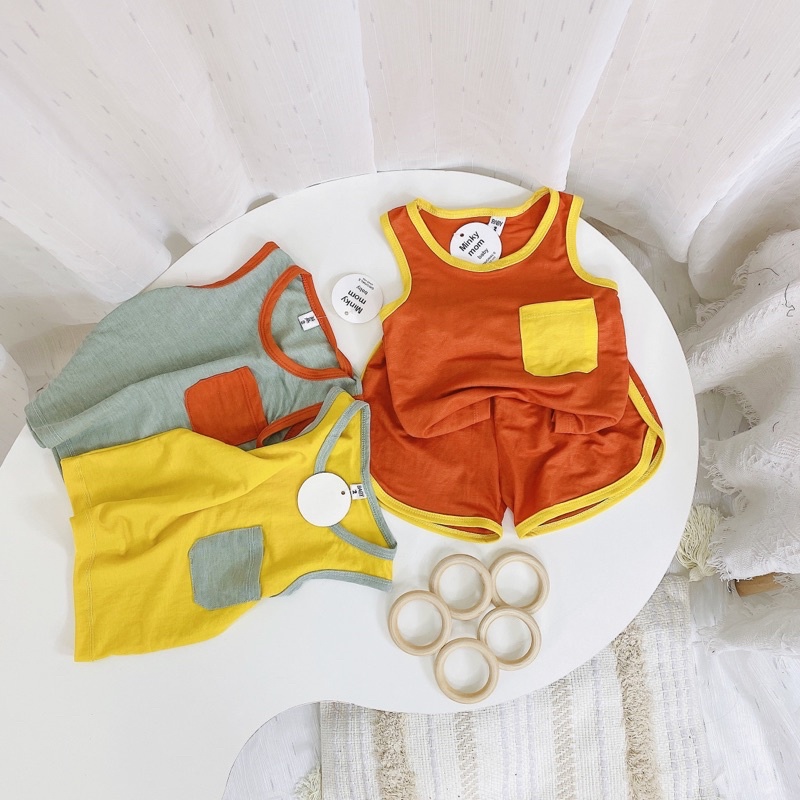 Thời trang trẻ em & trẻ sơ sinh > Quần áo bé trai > Com lê & đồ bộ || Bộ Quần Áo Trẻ Em Ba Lỗ Bộ Bé Trai 3 Lỗ Vải Cotton Đũi Túi Phối Cho Bé Từ 8-18kg Mã BL18